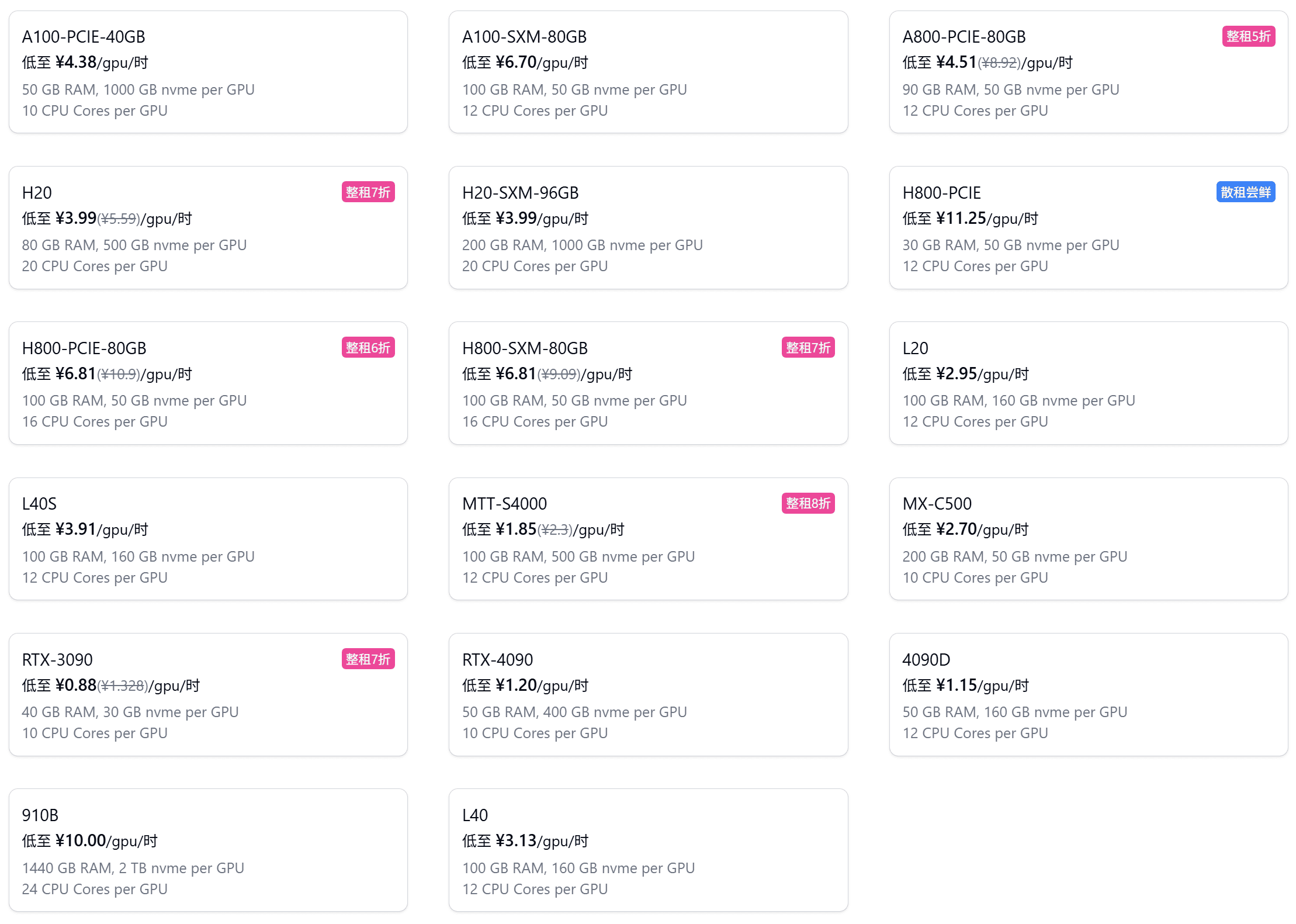 涵盖 NVIDIA 4090、H20、B200,华为昇腾 910B 等